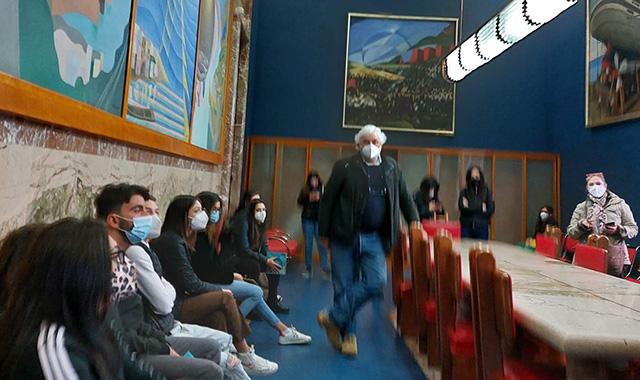 L’iniziativa, che rientra in un percorso di valorizzazione e condivisione del patrimonio immobiliare e artistico dell’azienda, ha permesso agli alunni di approfondire gli aspetti architettonici del Palazzo, costruito negli anni ‘30 e di visitare le stanze che ospitano importanti opere d’arte. Nella monumentale Sala Conferenze i ragazzi hanno avuto l’occasione unica di osservare le opere futuriste dell’artista Benedetta Cappa Marinetti e di immergersi, nella stanza del Direttore Provinciale, nell’ambiente interamente progettato da Paolo Bevilacqua, oggi sede del Direttore di Filiale.