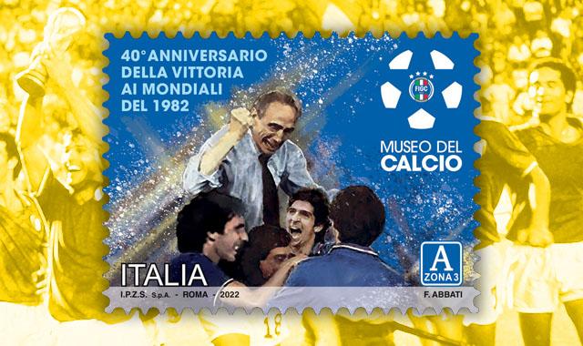 È stato emesso dal Ministero delle Imprese e del Made in Italy un francobollo ordinario appartenente alla serie tematica “lo Sport” dedicato alla vittoria della Nazionale italiana nel Campionato mondiale di calcio del 1982, nel 40° anniversario, relativo al valore della tariffa A zona 3 pari a 5,50€ Tiratura:quattrocentomilacinque esemplari. Foglio da quarantacinque esemplari. I francobolli sono stampati dall’Istituto Poligrafico e Zecca dello Stato S.p.A., in rotocalcografia, su carta bianca, patinata neutra, autoadesiva, non fluorescente. Bozzetto a cura di Fabio Abbati.