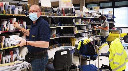 Un'immagine dei portalettere in servizio presso il centro di distribuzione di Chieti (2022)